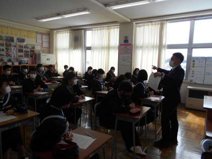 不審者対応避難訓練 公開日 2022/02/28 更新日 2022/02/28 山室中学校のページ 先週末、不審者対応の避難訓練を行いました。 山室中学校に不審者が入った場合の放送や、動きについて確認しました。 いざという時に、しっかり動けるよう、先生の話を真剣に聞いてイメージしています。