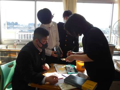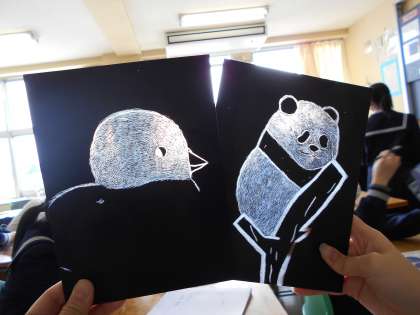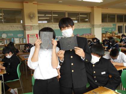 2年生 美術アートグラス 公開日 2022/02/28 更新日 2022/02/28 山室中学校のページ 2月28日(月) 2年2組の美術では、アートグラスを進めています。何と!アクリル板の裏側に色を塗り始めています。光に透かすと、とっても美しい!どの作品も個性が光ります。