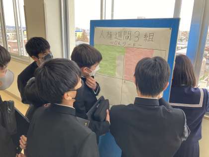1学年人権週間3日目 公開日 2022/03/02 更新日 2022/03/02 1学年 3月2日(水) 1学年人権週間3日目です。昨日使ったOKワードとは違う新しいOKワードを使うようにしていたようです。 3組では、お誕生日の友達に向けて、「おめでとう!」の温かい言葉を添えて、拍手でお祝いしていました。 今後も廊下の掲示を参考にして、あたたかいOKワードが増えるといいですね。