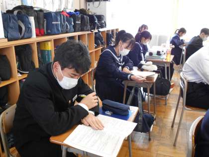 2年生 先輩に学ぶ会準備 公開日 2022/03/02 更新日 2022/03/02 山室中学校のページ 3月2日(水) 2年生の総合的な学習の時間では、来週行われる「先輩に学ぶ会」に向けて、しおりを熟読し、各校の先輩に聞きたい質問事項等をクロームブックに入力しています。 せっかく直に高校の先輩にお会いできる機会なので、しっかりと準備をして臨みます。