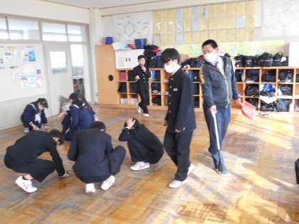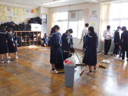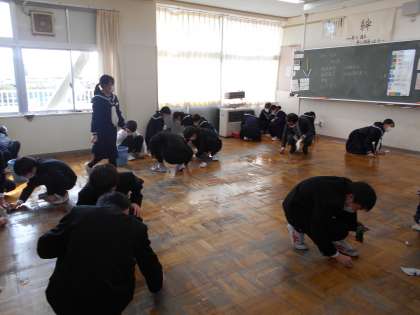 2年生 ワックスがけ 公開日 2022/03/04 更新日 2022/03/04 山室中学校のページ 3月4日(金) 2年生は、放課後のワックスがけに向けて、大掃除をしています。クラスのみんなで協力し、1年間の汚れを落としています。ドアのレールや、教壇の下まで隅々まできれいにしていますね。ナイスチームワークです。