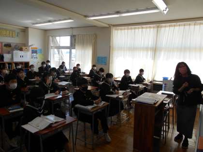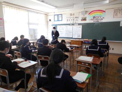 1年生 授業風景 公開日 2022/03/04 更新日 2022/03/04 山室中学校のページ 3月4日(金) 1−5英語:過去形の文章をつくる練習をしています。 1−6数学:数学では、ヒストグラムの学習をしています。何が読み取れるかな?