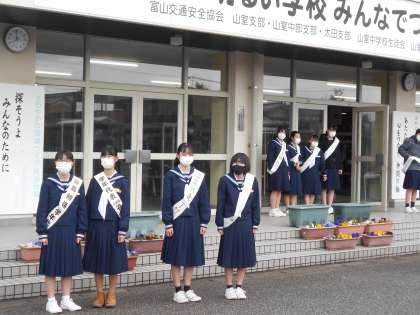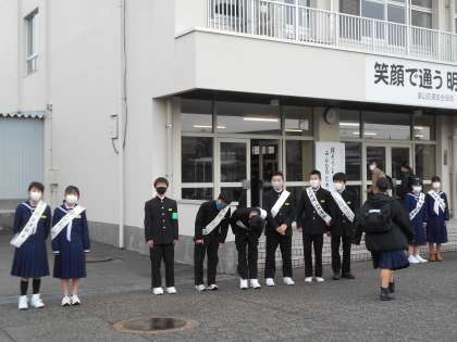 今朝の選挙運動 公開日 2022/03/07 更新日 2022/03/07 山室中学校のページ 3月7日(月) 今朝も玄関先では、生徒会選挙に出る生徒が元気よく声を掛けています。全校生徒のみなさん、立候補者の顔と名前は覚えましたか? ポスターや広報も併せてよく読み、貴重な一票の投票をお願いします。