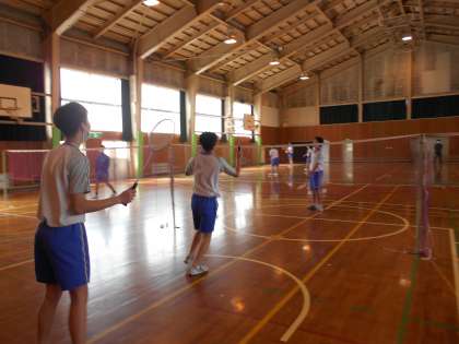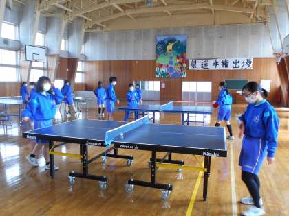 3年生 最後の体育授業 公開日 2022/03/07 更新日 2022/03/07 山室中学校のページ 3月7日(月) 3−5体育:今日は3年間最後の体育の授業になりました。男子はバドミントンとバスケットボール、女子は卓球に打ち込んでいます。最後の体育をめいいっぱい体を動かして楽しんでいました。