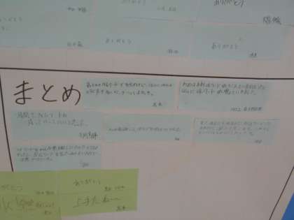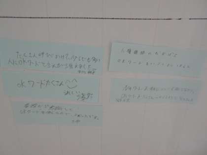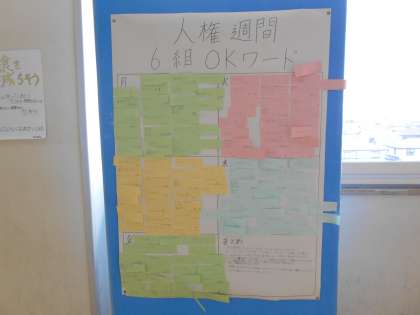 1年生 人権週間終了 公開日 2022/03/08 更新日 2022/03/08 山室中学校のページ 3月8日(火) 1年生は先週末で「人権週間」を終えました。5日間、各自が意識してOKワードを使うように心がけ、教室前の掲示板にはたくさんの温かい言葉が並びました。 1週間の取組を終えて、「教室の雰囲気がより明るくなった。」「NGワードが減って過ごしやすくなった。」と振り返っている生徒もいます。 この温かい1年生の雰囲気を来年にもつなげていけるといいですね。