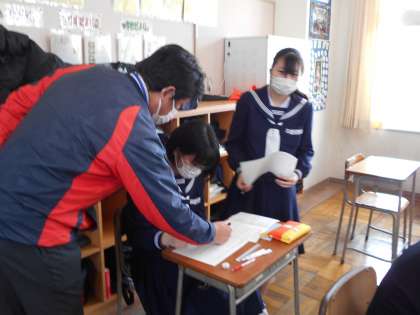 2年生 授業風景 公開日 2022/03/10 更新日 2022/03/10 山室中学校のページ 3月10日(木) 2−2数学:教科書の練習問題にチャレンジ中です。 2−3理科:「電磁誘導の仕組みはね・・・」 2−5数学:複数のデータの分布を比較してみよう!分からないところは、友達と教え合いをしています。