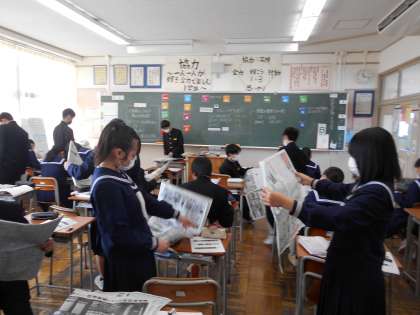 1年生 授業風景 公開日 2022/03/10 更新日 2022/03/10 山室中学校のページ 3月10日(木) 1−1数学:相対度数について学んでいます。何やら真剣な表情で電卓をたたいています。 1−3、4保健:「心と体の密接な関係について考えよう。」オリンピックのDVDを見ながら考えています。 1−3家庭科:SDGsって何だろう?新聞から17のゴールの視点から記事を探しています。