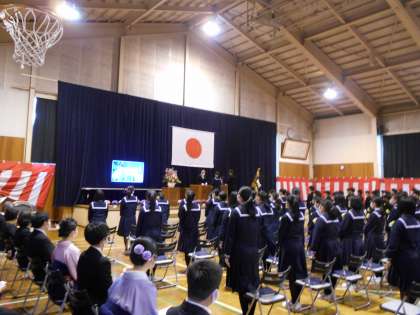 3月15日(火) 卒業の歌は、「旅立ちの日に」です。桜が咲き誇るように、心を込めて歌いました。