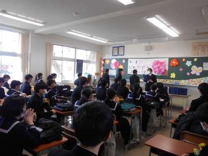 3年生 最後の学活 公開日 2022/03/15 更新日 2022/03/15 山室中学校のページ 3月15日(火) 各クラスで最後の学活です。各クラス、思い思いに担任とクラスメイトとの別れの時間を味わいました。