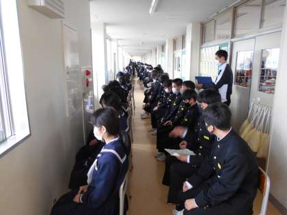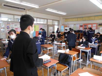 1年生 当たり前の大切なこと実施中 公開日 2022/03/17 更新日 2022/03/17 山室中学校のページ 3月17日(木) 授業開始前:「2分前だよー座ろう!」「座ろう」互いに声を掛け合います。 授業前:当番が黒板をきれいに整えます。美しい黒板、気持ちがいいですね。 集会移動:廊下に出たら整然と椅子を並べて静かに待ちます。 「継続は力なり。」ですね。