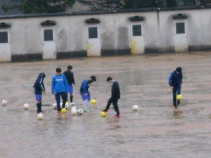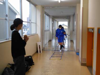 あいにくの雨で、校舎内のトレーニングを工夫して行っている部もあります。
