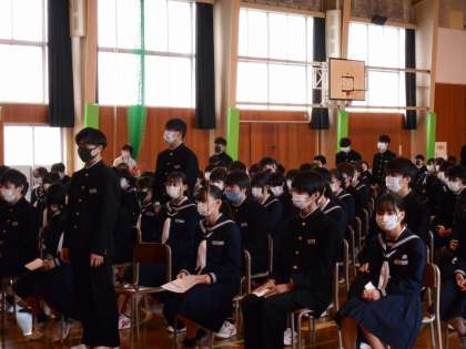 2年生では、今学期を振り返って挨拶部門や部活動部門、清掃部門等、各クラスで頑張った人を讃え、「学級MVP表彰」を行いました。