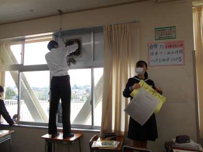 2年生 環境整備 公開日 2022/03/23 更新日 2022/03/23 山室中学校のページ 3月23日(水) 2年生は、換気扇や廊下の高窓、ロッカーの裏の隅々まで磨き上げています。どの生徒も真剣に取り組んでいます。