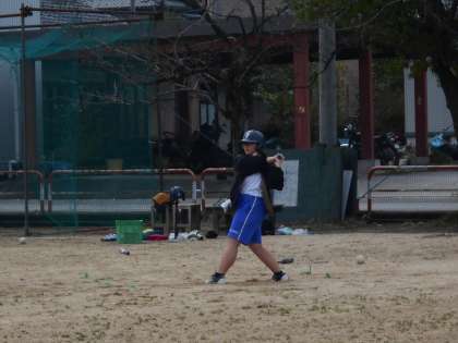 3月29日(火) ソフトボール部はバッティング練習中です。 「行くぞー」「カキーン!」