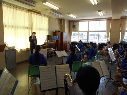 春休みの部活動〜吹奏楽部〜 公開日 2022/03/30 更新日 2022/03/30 山室中学校のページ 3月30日(水) 吹奏楽部は、4月の演奏会に向けて練習しています。転出される顧問の先生とのひとときを、楽しみながら演奏しています。