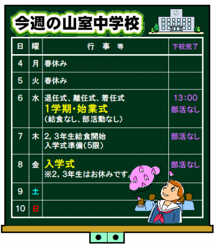 毎週日曜日に「♪今週の山室中学校♪」をアップします。