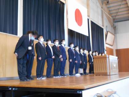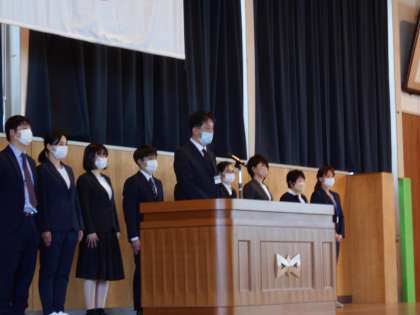 着任式 公開日 2022/04/06 更新日 2022/04/06 山室中学校のページ 4月6日(水) 11:00 本日17名の新しい教職員の方をお迎えしました。 新しい「チーム山室」が始動します。 全員で力を合わせて、楽しくわくわくする山室中学校を目指して、頑張っていきますので、よろしくお願いします!