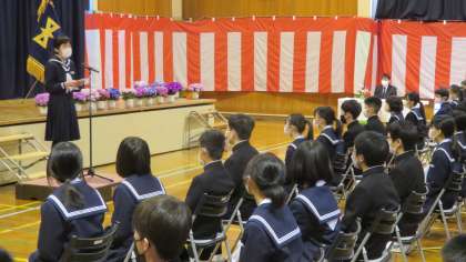 ▼歓迎のことば(生徒代表:江上芽花さん)