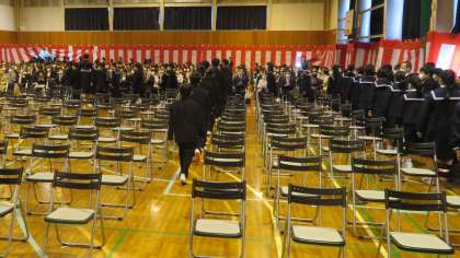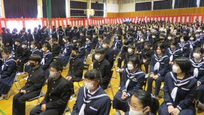 入学式特集・その8 公開日 2022/04/08 更新日 2022/04/08 山室中学校のページ 4月8日(金) 10:10 新入生は担任を先頭に退場しました。 新入生は、第2体育館で記念撮影したあと、教室で初めての学活を行います!! (保護者のみなさんは、第1体育館でPTA入会式です。)