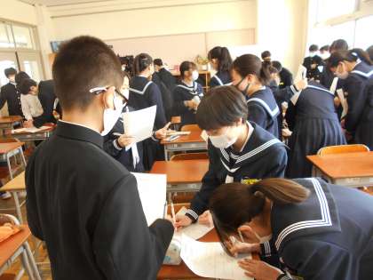 各学級で担任から熱い思いが伝えられ、全員で自己紹介をし、その後は級友と仲を深めるための学活を行いました。
