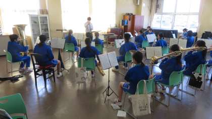吹奏楽部は、明日、アピタ富山店で行われる「交通安全ハンドサイン演奏会」に出演するため、前日練習を行っています。