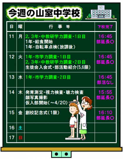 2,3年生は明日から「中教研学力調査」が、1年生は明後日から「市学力調査」が始まります。