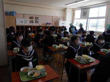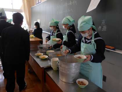1年・初給食 公開日 2022/04/11 更新日 2022/04/11 山室中学校のページ 4月11日(月) 12:40 1年生は初めての給食準備です。 学活で教わったことを忠実に守って、給食当番も、その他のみなさんも、テキパキと動いていますね。