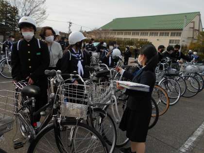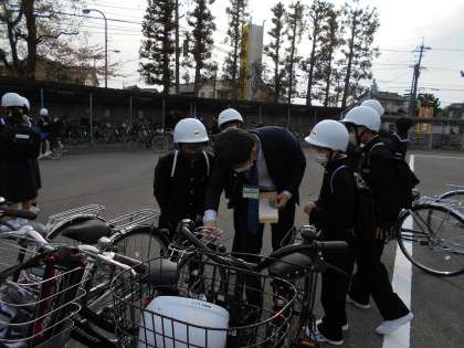 放課後は、各クラスに分かれて自転車点検をしました。