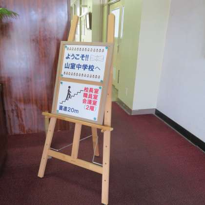 正面玄関にイーゼル(画架)を使ったウェルカムボードを置きました。
