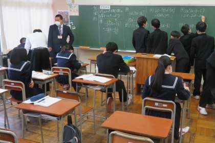 3年・授業風景・その1 公開日 2022/04/15 更新日 2022/04/15 3学年 4月15日(金) 2限 教科の授業も少しずつ軌道に乗ってきたようです。 (写真 上:3年1組 国語の授業) (写真 中:3年2組 数学の授業) (写真 下:3年3組 理科の授業)