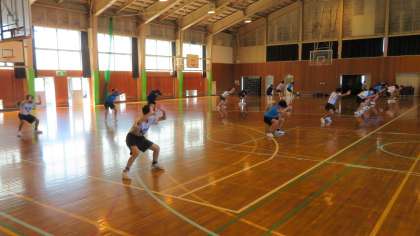 第1体育館では、男子バスケットボール部が練習を始めました。