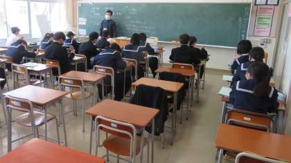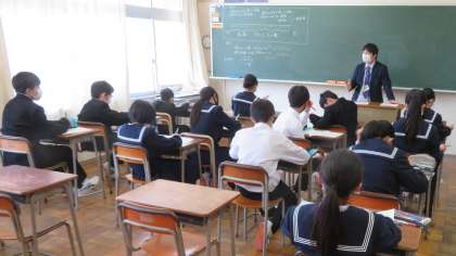 (写真 上:1年1組aの数学 下:1年1組bの数学)