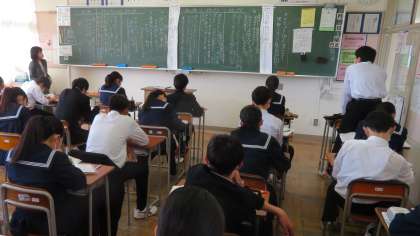 3年・授業風景 公開日 2022/04/22 更新日 2022/04/22 3学年 4月22日(金) 1限 気温は17度、天気は晴れ。 3年生、今日も授業がんばっています! (写真 上:3年1組 国語の授業) (写真 中:3年3組 社会の授業) (写真 下:3年5組 理科の授業)
