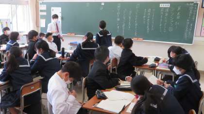 1年・授業風景 公開日 2022/04/22 更新日 2022/04/22 1学年 4月22日(金) 5限 気温は21度、天気は晴れ。 1年生、今日も授業がんばっています! (写真 上:1年1組 英語の授業…ALTロビショー先生と) (写真 中:1年2組 国語の授業) (写真 下:1年5組 英語の授業)