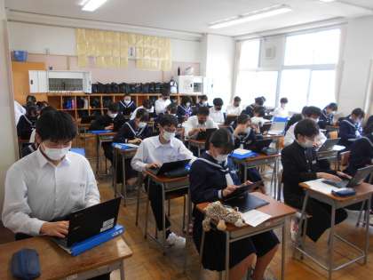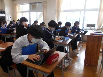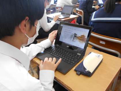 3年・修学旅行事前学習 公開日 2022/04/22 更新日 2022/04/22 3学年 4月22日(金) 6限 3年生は、修学旅行に向けて、クロムブックを使って京都について調べています。 一人ずつ興味を持ったテーマについて調べて、発表する予定です。