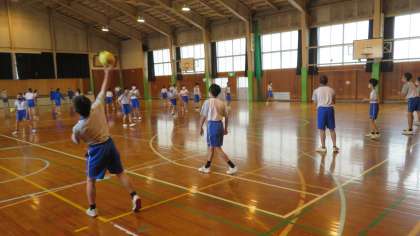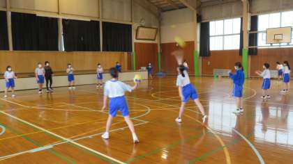 2年・体育・ハンドボール投げ 公開日 2022/04/23 更新日 2022/04/23 2学年 4月23日(土) 1限 2年3組の体育は、第1体育館で、ハンドボール投げに向けて、練習していました。 (写真 上:男子 下:女子)
