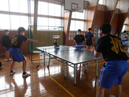 4月24日(日)の部活動・その3 公開日 2022/04/24 更新日 2022/04/24 部活動 4月24日(日) 9:00 卓球部は部員同士で球出しをしながら、ひたすら打ち込みです。 「FUKUSHIMA2号」と名付けられたマシーンは、左右に速く球を出すので、追いつくのに必死です!