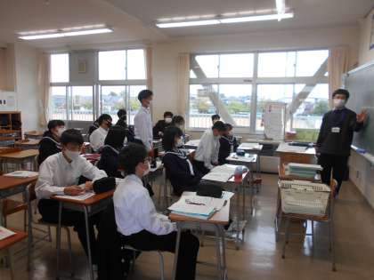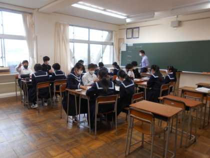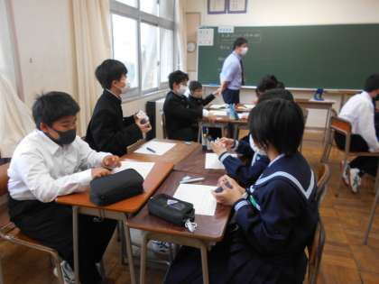 1年・数学・少人数指導 公開日 2022/04/26 更新日 2022/04/26 山室中学校のページ 4月26日(火) 3限 1年1組の数学は、少人数指導で2クラスに分かれて行っています。 人数が少ないので、気軽に質問したり、教え合い学習を行ったりしています。