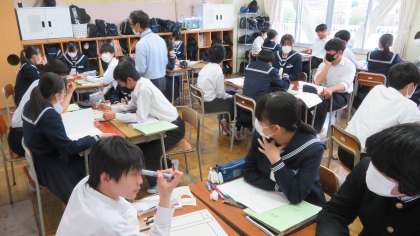 3年・授業風景 公開日 2022/04/26 更新日 2022/04/26 3学年 4月26日(火) 2限 4月最終週になりました。 (写真 上:3年2組 社会の授業) (写真 中:3年3組 社会の授業) (写真 下:3年4組 理科の授業) GWは近いですが、授業には真剣に取り組んでいます。