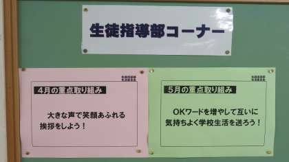 5月の重点取り組みは、「OKワードを増やして互いに気持ちよく学校生活を送ろう!」です。