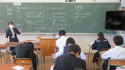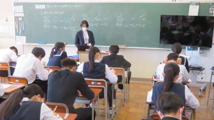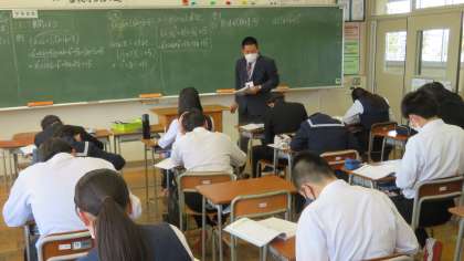 3年・授業風景・その1 公開日 2022/04/28 更新日 2022/04/28 3学年 4月28日(木) 3限 明日からGWですが、うかれることなく、授業に集中しています。 (写真 上:3年1組 理科の授業) (写真 中:3年2組 数学の授業) (写真 下:3年3組 社会の授業)