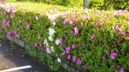5月2日(月) 8:00 教職員駐車場の垣根のツツジが見頃を迎えようとしています!
