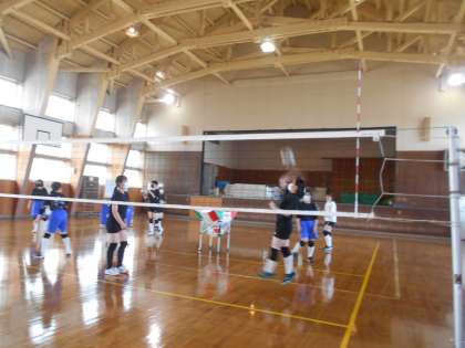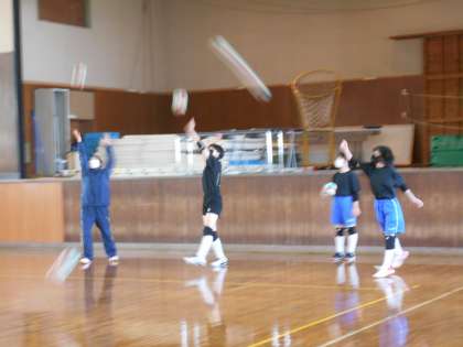 パス、アタック、サーブ練習の後は12人でゲームをします。