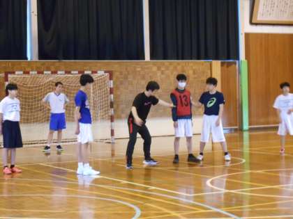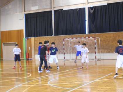 5月5日(木)の部活動・その3 公開日 2022/05/05 更新日 2022/05/05 部活動 5月5日(木) 10:00 男子ハンドボール部は、相手の攻撃に対しての守りのフォーメーションを確認しています。 作戦板で、ポジションや動きを確認した後、実際に動いて体で覚えます。