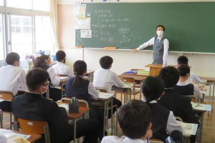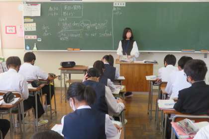 2年・授業風景・その1 公開日 2022/05/06 更新日 2022/05/06 2学年 5月6日(金) 2限 3連休明けですが、シャキッと授業に取り組んでいます。 (写真 上:2年1組 社会の授業) (写真 下:2年2組 英語の授業)