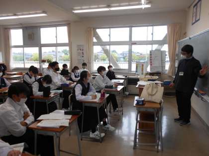 (写真:1年2組の授業のようす)
