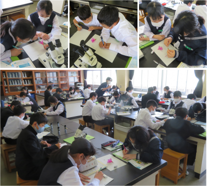 1年3組の理科は、第3理科室で、花のつくりの観察を行いました。