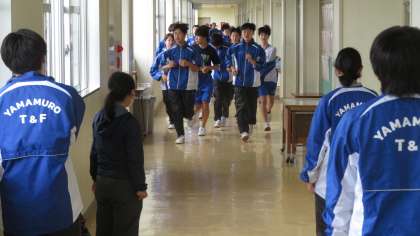 5月14日(土) 9:30 陸上競技部は、黙々と校舎内を走っています!
