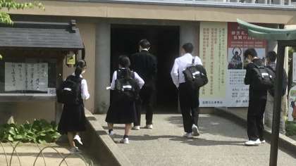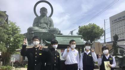 5月17日(火) 14:40 高岡大仏では、写真も撮りますが、しっかり学習もしています。