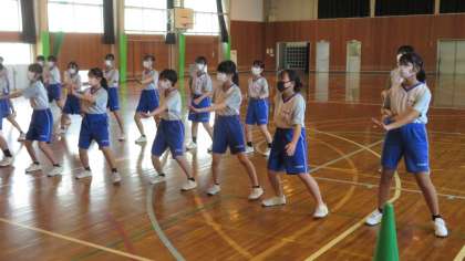 2年・保体・タッタダンス 公開日 2022/05/19 更新日 2022/05/19 2学年 5月19日(木) 2限 2年3組の体育は、第1体育館で、体育大会の団演技のメイン「タッタダンス」の練習をしていました。 昨年度に一度、覚えているので、もうノリノリです!